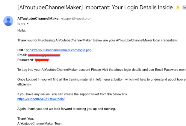 Subject: [AIYoutubeChannelMaker] Important: Your Login Details Inside